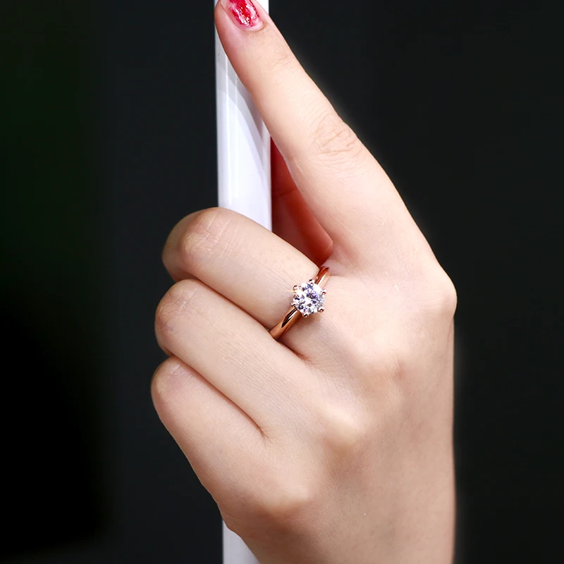 Classic 1ct rose gold plated moissanite rings 925 sterling silver rings moissanite diamond wedding engagement rings for women