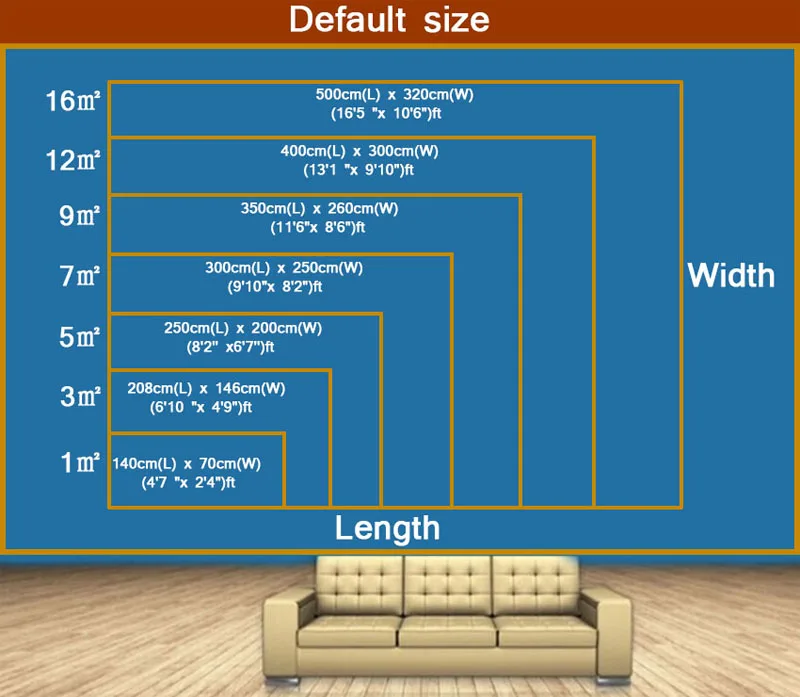Please write down the accurate wall or floor size below the order or leave me the message in time. After we get your confirmed size, usually we would ship out in 3 days. If you haven't provided us your detail custom size below the order within 24 hours, We will customize the pvc self-adhesive mural wallpaper as per the following default size.