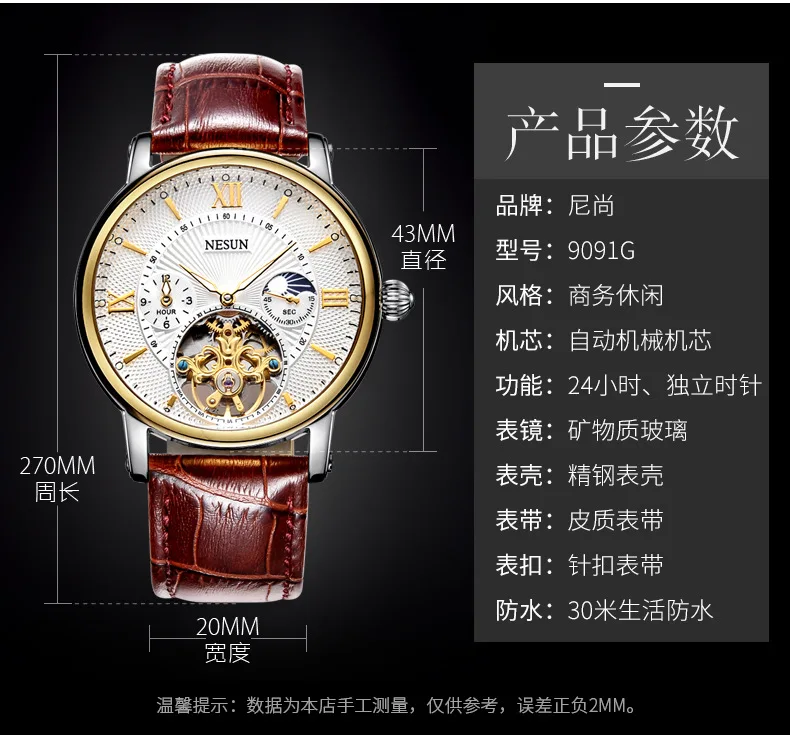 NESUN 9091 elegant man mechanical watch latest Stainless steel band Luminous automatic winder business wrist watch