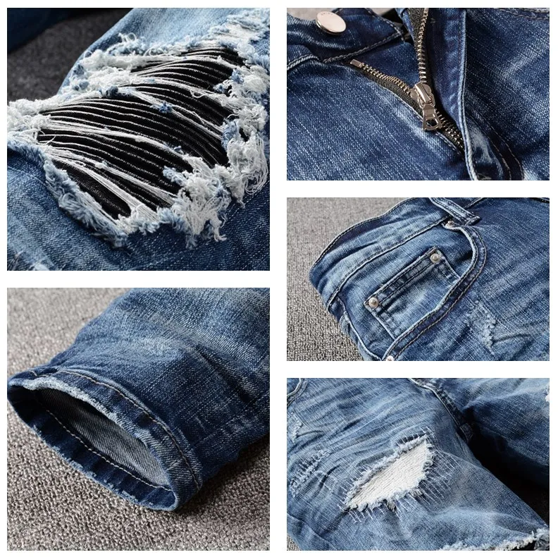 Choose Options Quick view 2018 New Arrived Men Jeans Distressed Slim Elastic men Jeans Denim Biker Jeans Hip hop Pants Washed Ripped Jeans MSRP: ₹3,546 Now: ₹3,016 Was: Item Type: Jeans