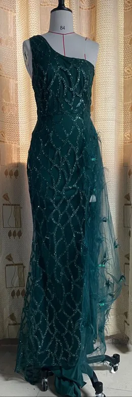 • Slanted Shoulder Sequined Sleeveless Evening Dresses Slim Elegant Women's Dress