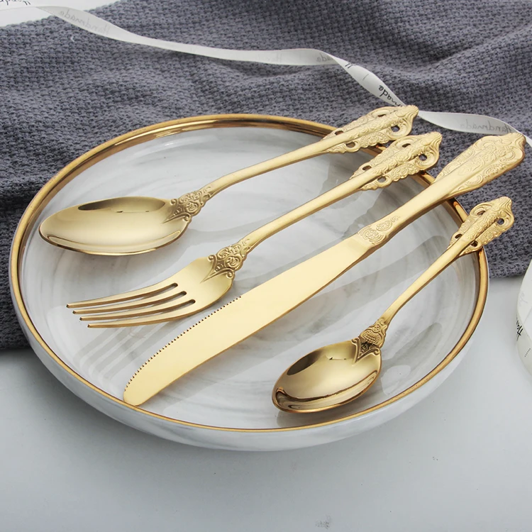 trending 2023 stainless steel royal cutlery set spoon and fork set stainless gold cutlery set luxury flatware 18/10