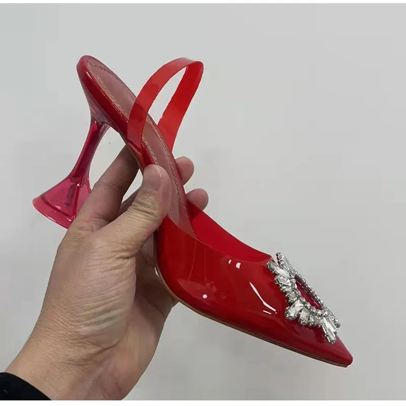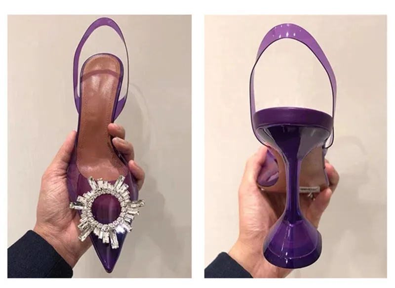 Sandalias Plastico 2021 New Arrival Women Shoes Silver Rhinestone Blue Purple Green Clear Heels for Women